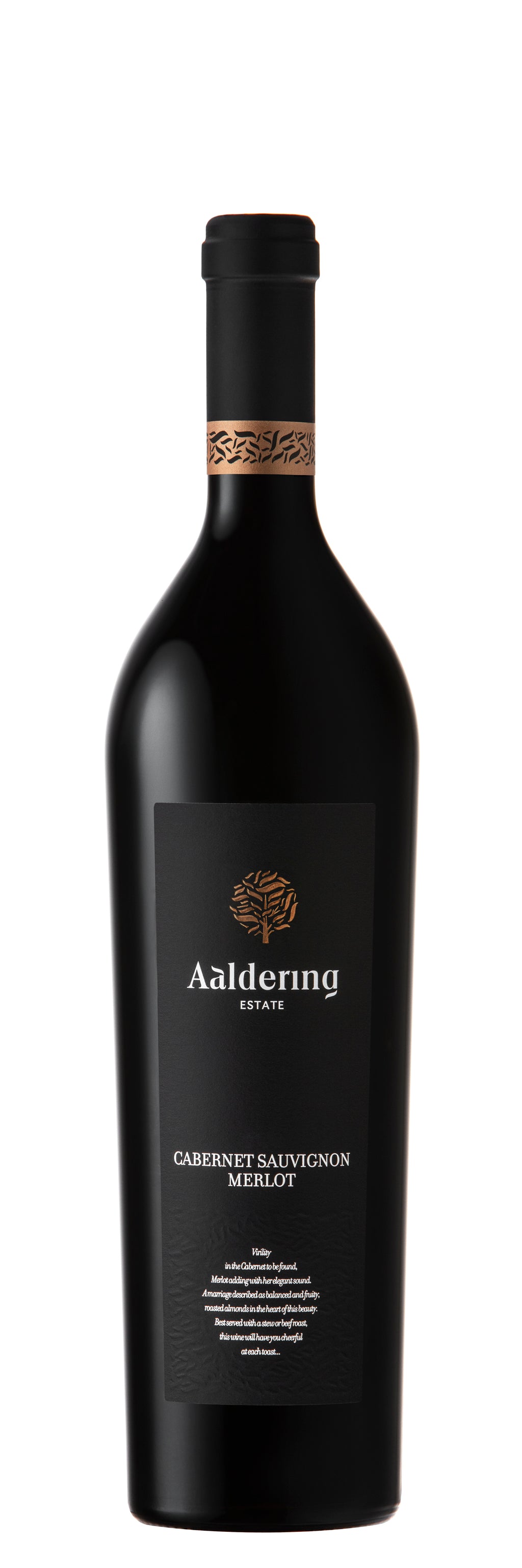 Vi er i Sydafrika, nærmere betegnet Stellenbosch, og vinhuset Aaldering Estate. Der er tale om en af deres top-vine, lavet på et mix af druer fra forskellige årgange. Dette blend har lagret 27 måneder på franske egetræsfade